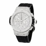 The Hublot Big Bang Black Magic 44MM 301.CX.130.RX Replica is a luxury watch. It features a 904L stainless steel case and bezel. both in black. and a sapphire crystal. The movement is an automatic HUB 44 caliber with a 60-hour power reserve and precision within COSC certification limits. The dial is black with mixed indices and 904L stainless steel stick hour markers and hands. The bracelet is a black rubber adjustable band with a 904L stainless steel fold clasp.